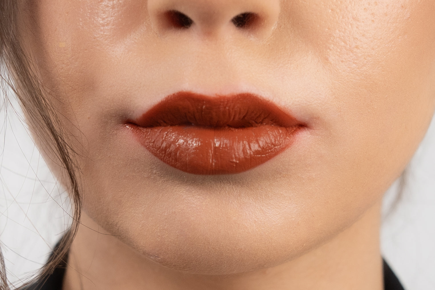 Rujul lichid mat – în nuanța Brown Shine, cu textură catifelată, nelipicioasă, care se aplică uniform și rezistă pe buze.