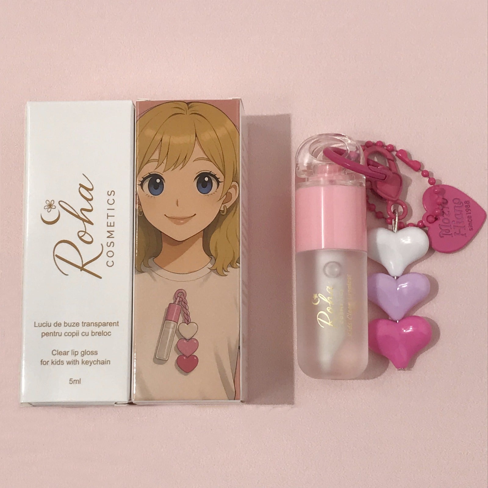 Clear Lip Gloss for kids with Keychain ( Pink)